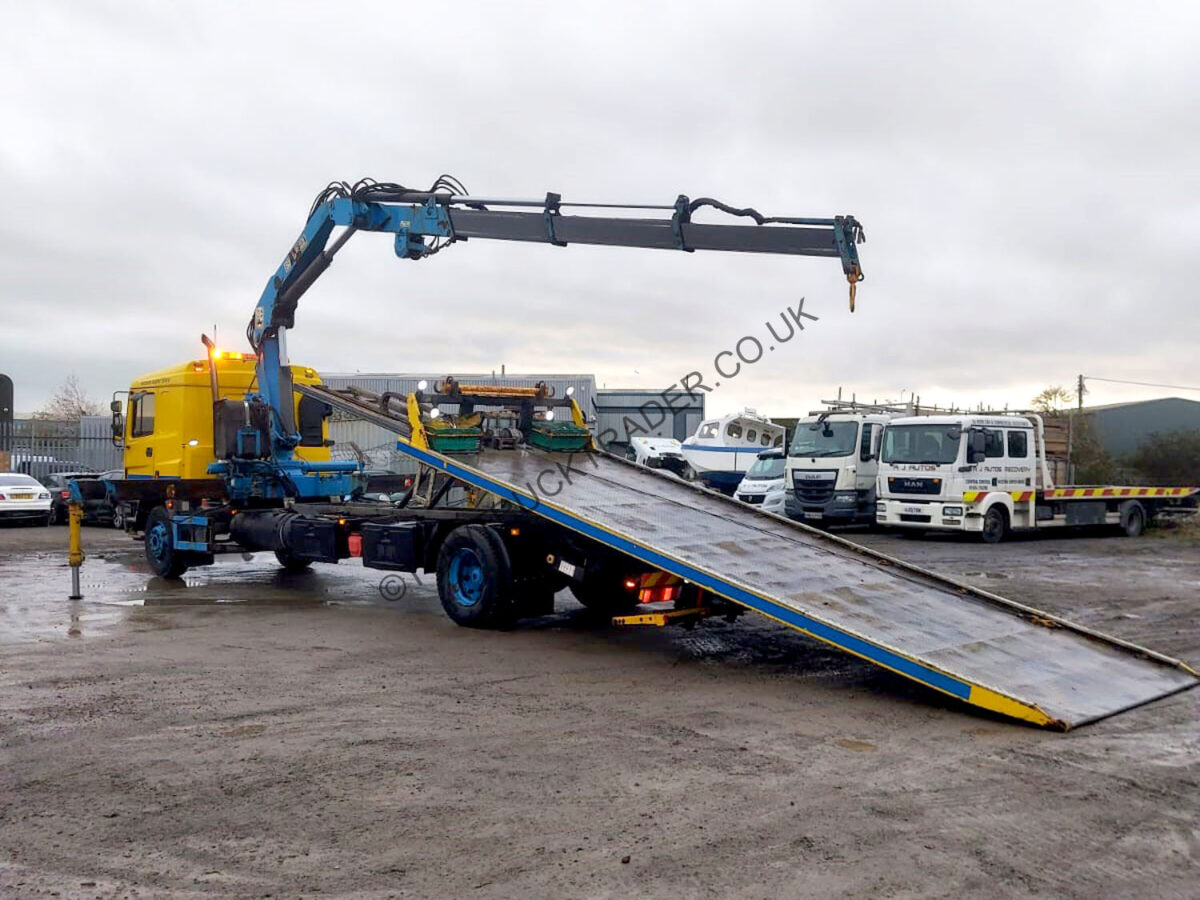Fitted with 25ft Tiger Trucks 6000kg steel slidebed with independent 2500kg second car lift, PM Serie 22 (22t/m) lorry loader crane with 2 ton winch on end, damage free frame and wheel clamps, spreader bar, lightbar, work-lights, chassis mounted tool lockers etc. MOT to 30/09/26, current LOLER etc. Call Tom on 07399 035424 for more details.