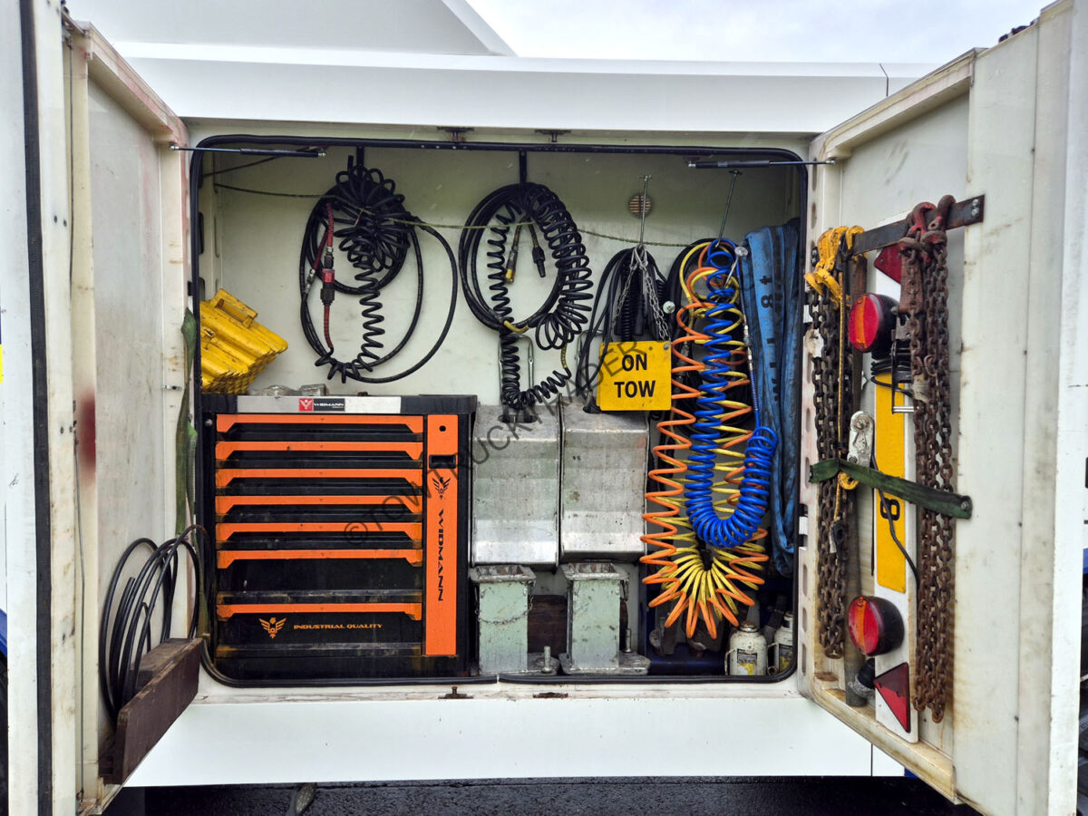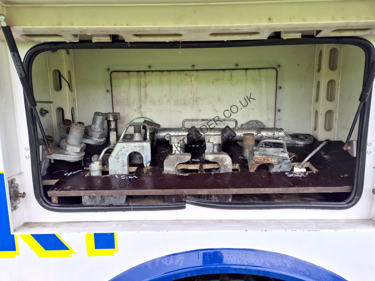 Fitted with Essel 3317 Maxi-Reach under-lift with integrated single stage top boom, twin hydraulic winches, rear stiff legs, plastic locker body, comprehensive set of lifting forks and attachments, Essel towing attachments (VDZ style kit), LED light-bar, LED work-lights, LED strobes, stack exhausts etc. 150 ton GTW, circa 384,250 km’s, MOT to 28/02/27. Finance packages available (subject to status).