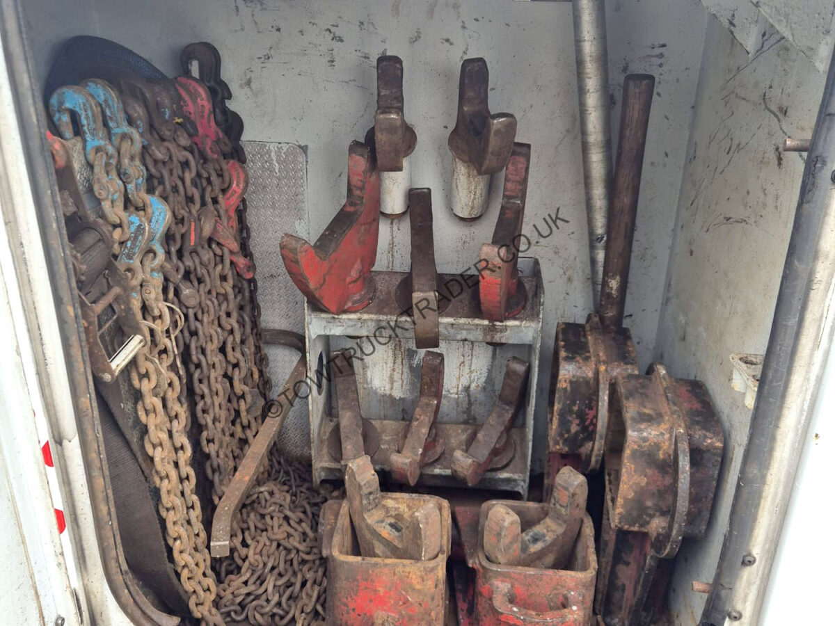 Fitted with 2004 Dyson/NRC 9515 medium duty under-lift with top boom, twin 12,000lb hydraulic winches, rear stiff legs, comprehensive set of lifting forks and attachments, light commercial adjustable wheel frames, LED light-bar, LED work-lights, LED strobes etc. 4 over 4 manual gearbox, 40 ton GTW, stainless steel roof bar with spot-lights, Alcoa alloy wheels etc. Circa 752,124 km’s, MOT to 30/09/26. Finance packages available (subject to status).