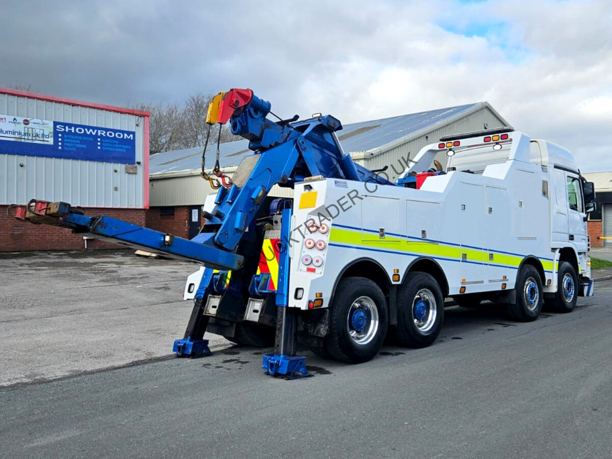 Fitted with Boniface Recoverer Trident ‘H’ (Maxi-Reach Lowline), 2x 50,000lb hydraulic winches, Lodar radio remote control, rear stiff legs, comprehensive set of lifting forks and attachments, deluxe Worldwide Recovery Systems stainless steel locker body, LED light-bar, LED work-lights, LED strobes, stainless steel top bar with spot-light and beacons etc. MOT to 30/06/26. Finance packages available (subject to status).