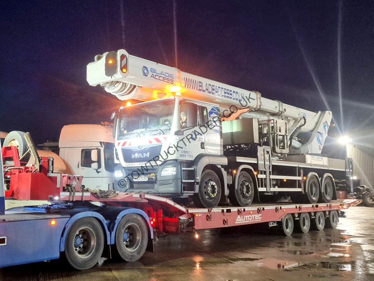 Complete with 30,000lb hydraulic Superwinch with radio remote control, hydraulic tailgate, hydraulic landing legs, wheel wells on the neck, twist locks for 20ft containers, stainless steel trims for edge protection etc. Sold with new MOT. Call John on 07989 582603 for more details.