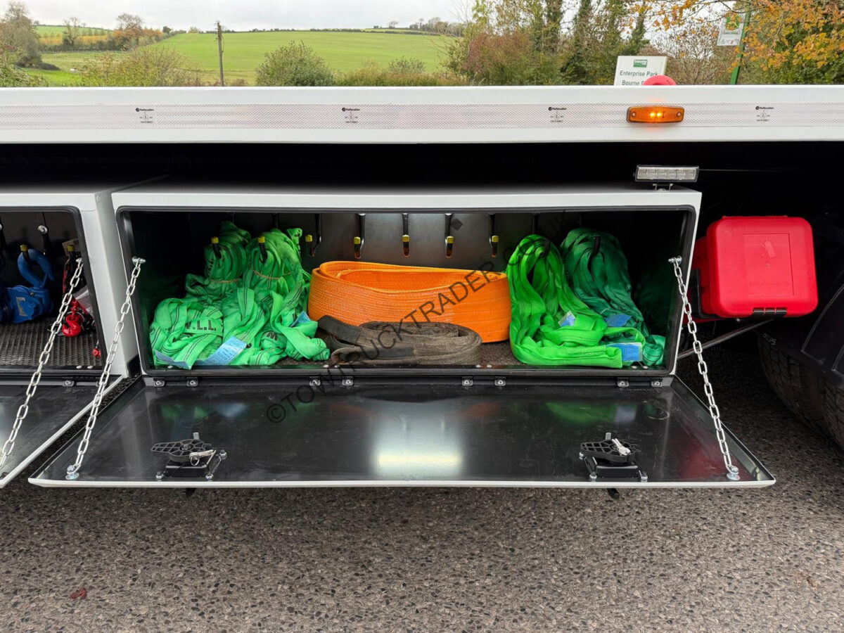 Fitted with fully refurbished Roger Dyson Hydraloader steel slidebed with independent 2nd car lift, HIAB X-HIDUO 16t/m lorry loader crane, hydraulic Superwinch, LED strobes, LED work-lights, top bar with spot-lights, Alcoa alloy wheels, stainless steel chassis mounted tool lockers – fully kitted to police specification. Circa 272,635 km’s, sold with new MOT. Finance packages available (subject to status).