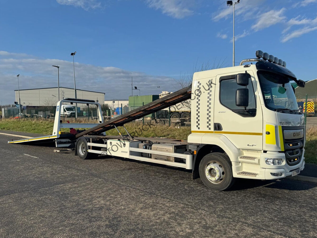 Fitted with Dave Bland 6000kg SLA (Super Low Approach) steel slidebed with 2000kg independent 2nd car lift, 8000lb ‘Reelsmart’ winch system with Lodar radio remote control, LED light-bar, LED work-lights, LED Halo-Blitz strobes front and rear, chassis mounted tool lockers, trolley jack locker, wrecker kit, skates, towbar attachment etc. Rear air suspension, air conditioning, manual transmission, diff lock, 260 bhp engine, night heater, camera system, stainless steel top bar with spot-lights etc. Circa 103,688 km’s, MOT to 31/08/26. Not to be missed – great spec truck. Finance packages available (subject to status).