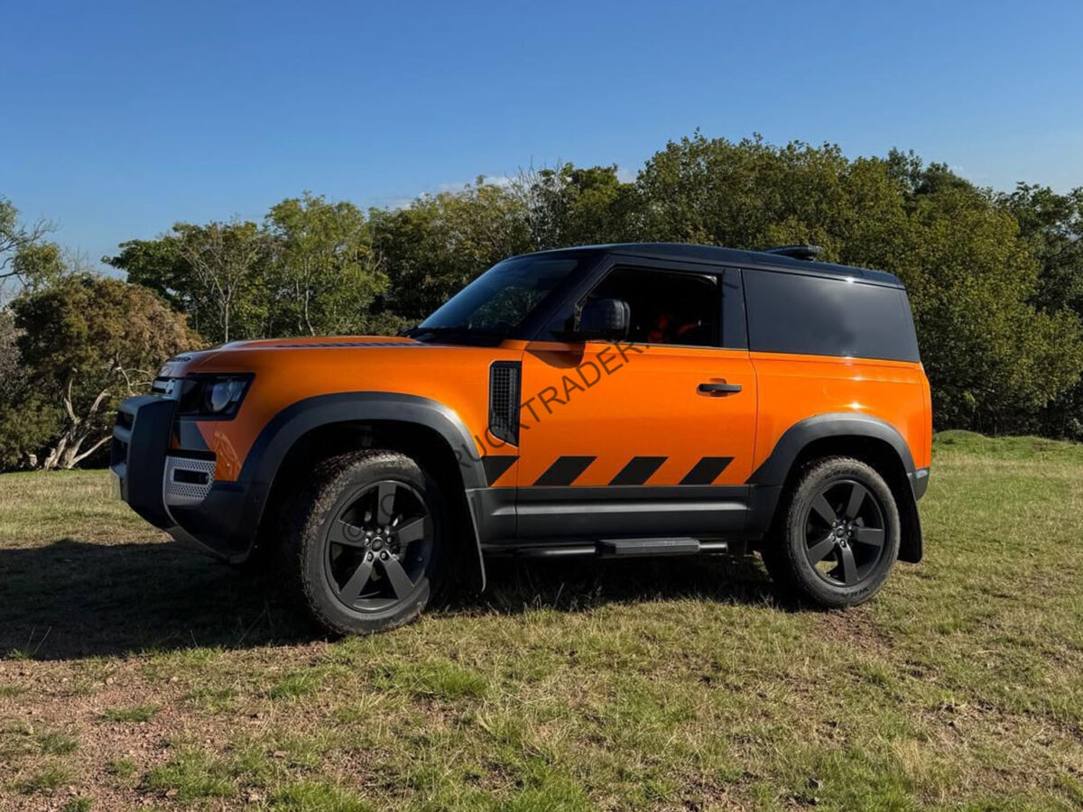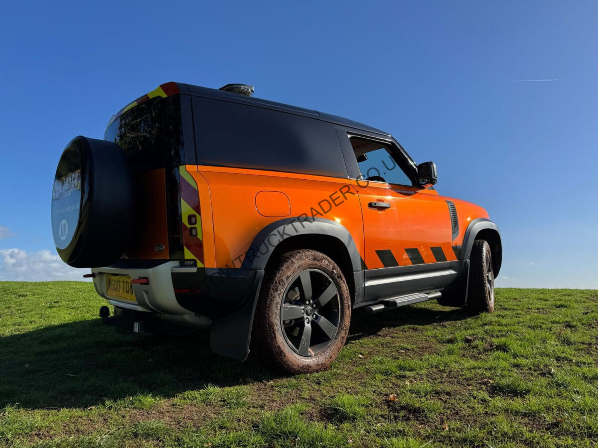Our own vehicle from new, complete with Land Rover fitted Warn Zeon 10S front mounted winch with synthetic cable and radio remote control including free-spool function, factory fitted multi height tow bar, Signal 911 LED light-bar with integrated repeater lights, alley lights, traffic director etc. with ProLux pro touch control pad, Lazerlamps Linear 18 Elite Driving light, Halo-Blitz LED’s on front, rear LED strobes, LED work-lights, side-steps, wheel arch eye-brows, 20 inch alloy wheels, clear-sight rear view mirror, 360 degree cameras, heated seats and mirrors, air con, sat nav, Apple car play/Android auto, seat covers have been fitted from new. 6 cylinder engine with 8 speed Full Land Rover service history (serviced at 18,676, 28,932, 39,043 and 48,903 miles). Circa 56,500 miles, MOT to 09/26. Orange wrap will be removed – Santorini Black underneath. Available early March. Finance packages available (subject to status).