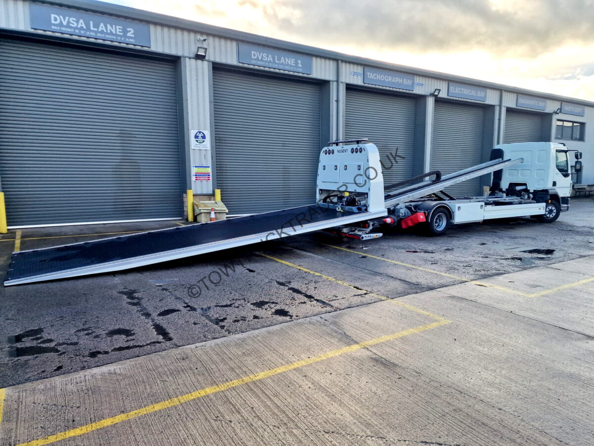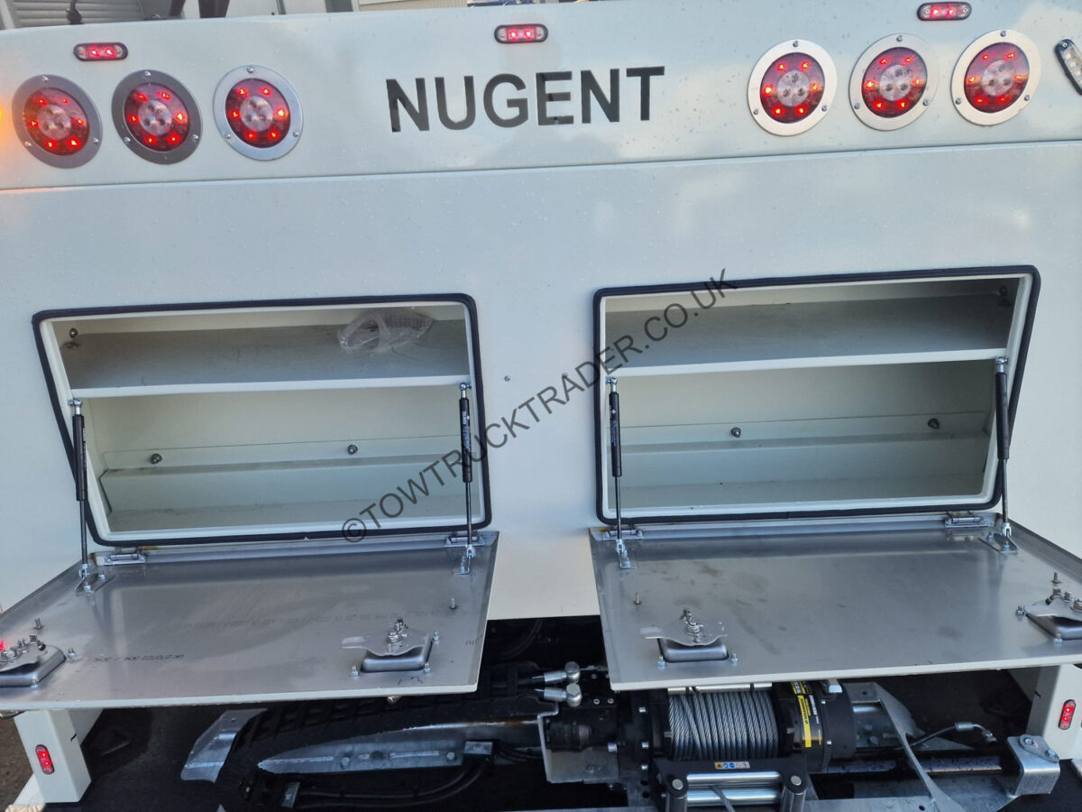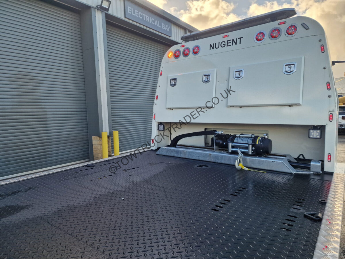 Fitted with new Nugent 5000kg SLA steel slidebed (22ft useable) with independent 2nd car lift, hydraulic sliding winch, Lodar radio remote to bed/winch, LED light-bar, LED work-lights, LED strobes front and rear, wrecker kit, chassis mounted tool lockers, cones etc. Top spec chassis with air con, multi function steering wheel, drivers air seat, adaptive cruise control etc. 3 year warranty on chassis and 12 months on body. 2025 but unregistered as awaiting first owner. Call Rich on 07793 093284 for more details.