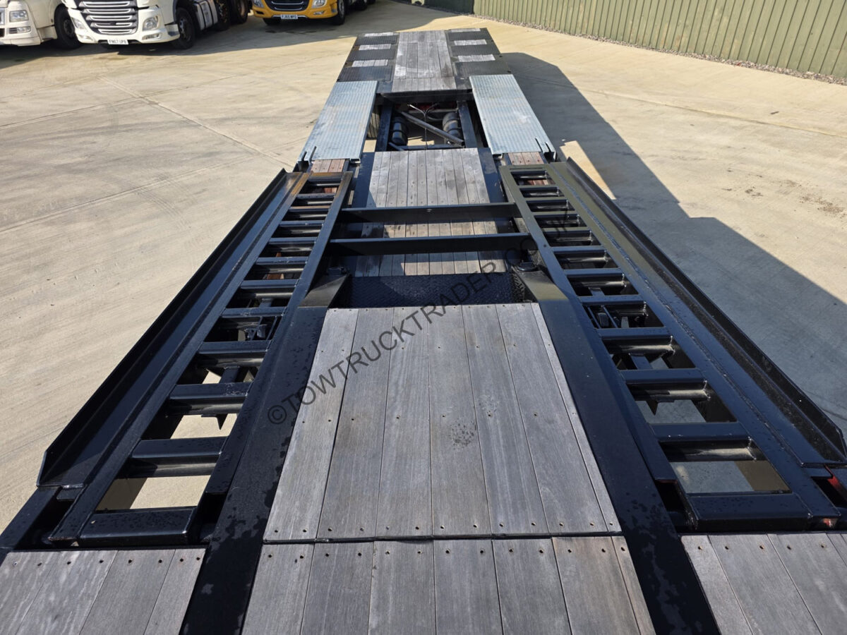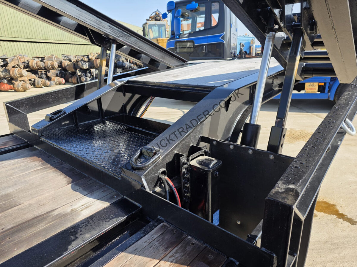 Unused – never been loaded. Extendable trailer with hydraulic flip deck, rear lift axle, tool boxes etc. Finance packages available (subject to status).