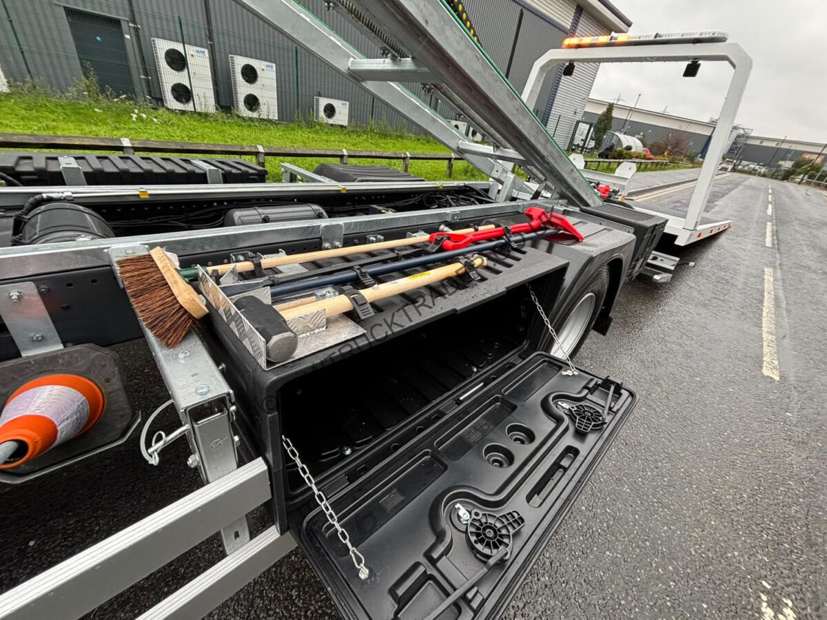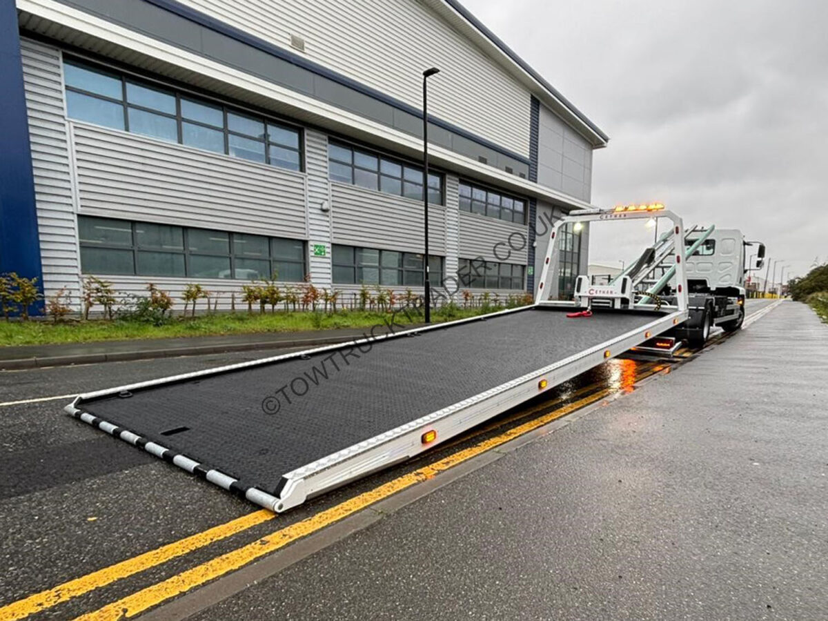 Fitted with Ceyhan 7000kg Super Low Approach steel slidebed (23.5ft useable) with 2000kg independent 2nd car lift, 8000kg Hammer Winch (manually sliding) with Lodar radio remote control, LED light-bar, LED work-lights, LED strobes front and rear, chassis mounted tool lockers, wrecker kit, cone carrier etc. Rear air suspension, air conditioning, sun visor, dual passenger seat, factory PTO etc. Finance packages available (subject to status).
