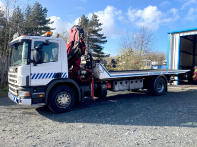 Fitted with new Ceyhan/MotoTechnik fully galvanised steel slidebed (25ft useable) with independent 2nd car lift, hydraulic sliding winch on platform, rear mounted winch, Palfinger PK18002EH (18t/m, 3 extension) lorry loader crane with full radio remote control, chassis mounted tool lockers, retractable air line, LED light-bar, LED work-lights, LED strobes, full radio remote control etc. Circa 342,491 km’s, sold with new MOT. Finance packages available (subject to status).